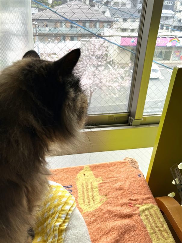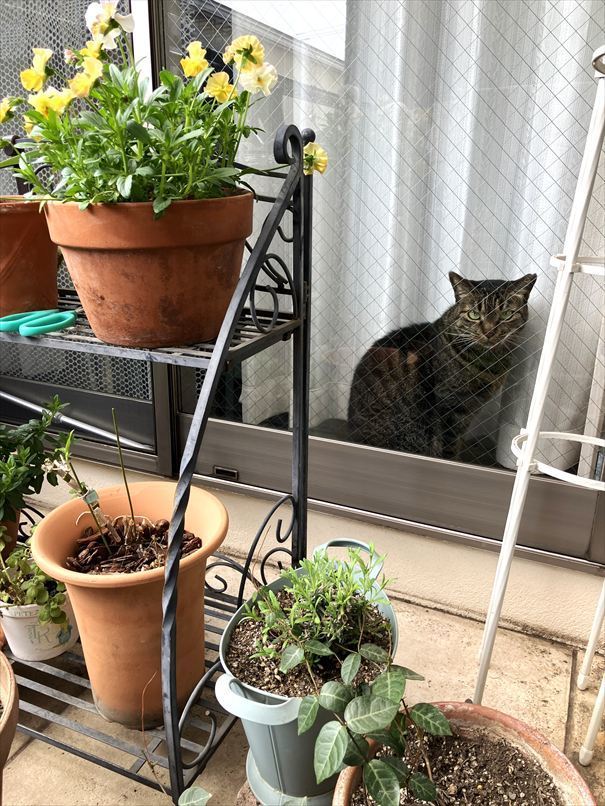 ちーちゃんのお部屋からは我が家の植木鉢のお花が見えます。