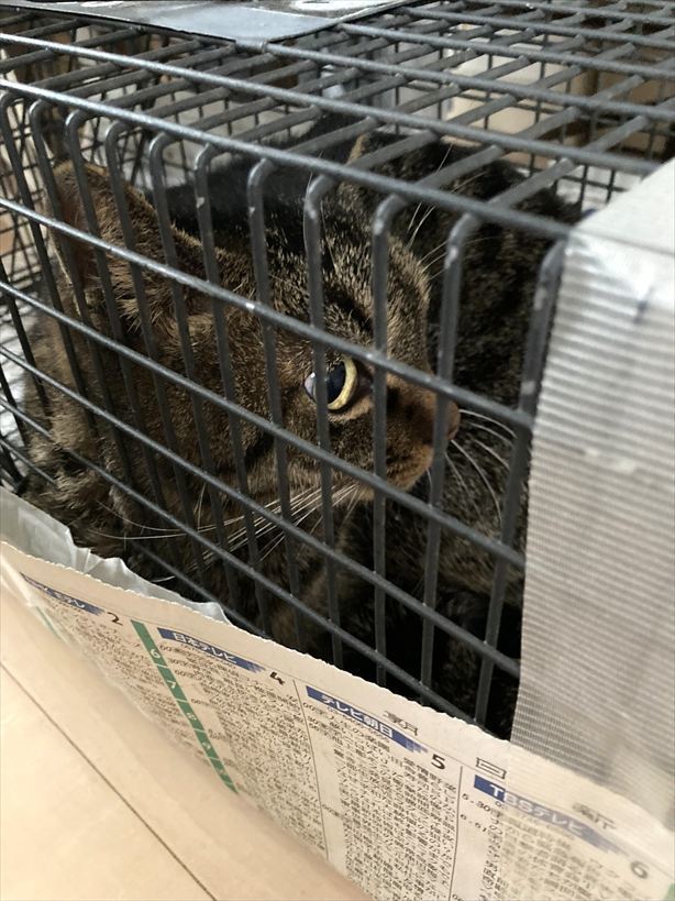 「お腹すいているのかな?」とご飯を置いてあげると一気に食べて姿を消してしまいます。雨の日も雪の日も、段ボールのお家を作ってあげたらお泊りもするようになり、保護(せめて不妊手術だけでも)することに。なかなか手ごわくて、おおあみ避難所より捕獲器をお借りしてやっとのことで保護しました。